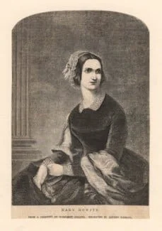 2: Mary Howitt (née Botham), by Alfred Harral, after Margaret Gillies. Wood-engraving, 1840s-1850s, 11 1/4 in. x 8 1/8 in. (287 mm x 207 mm) paper size. Given by Henry Witte Martin, 1861. NPG D4398. https://www.npg.org.uk/collections/search/portrait/mw38692/Mary-Howitt-ne-Botham